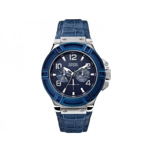 Оригинальный ремешок GUESS из натуральной кожи синего цвета.