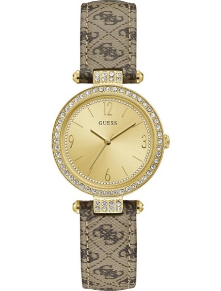 Оригинальный ремешок GUESS из натуральной кожи с тиснением по поверхности фирменного логотипа в виде букв G.
