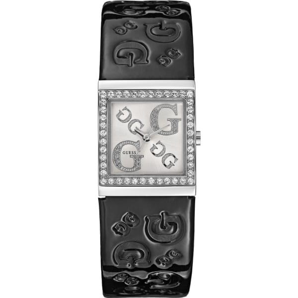 Оригинальный ремешок для часов GUESS. Черный лак с тиснением буквами "G".